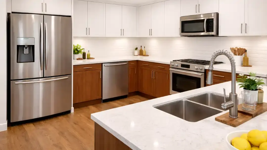 We use durable, high-end materials for cabinets, countertops, backsplashes, appliances, and flooring. Everything is selected to stay beautiful and strong for years.